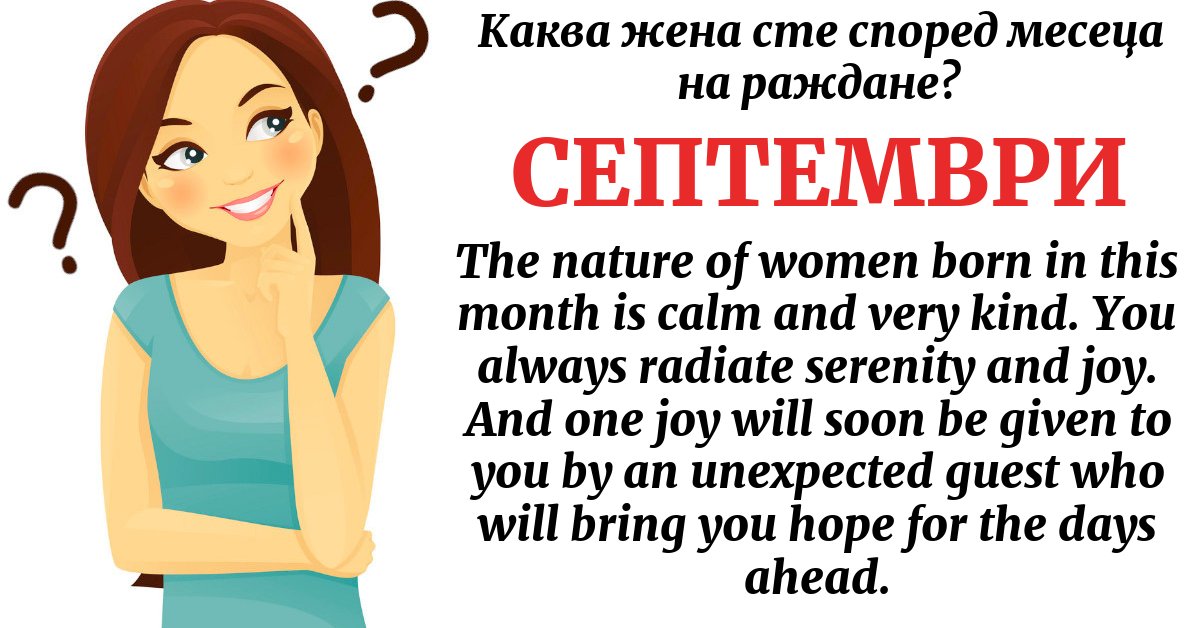The nature of women born in this month is calm and very kind. You always radiate serenity and joy. And one joy will soon be given to you by an unexpected guest who will bring you hope for the days ahead.