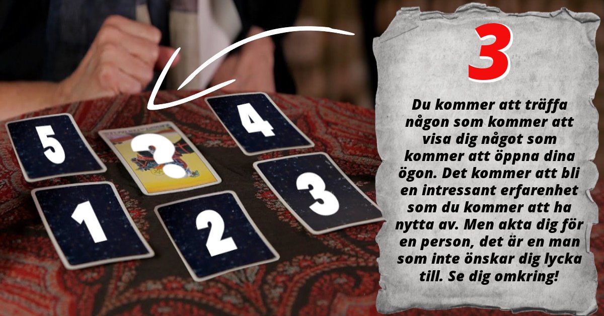 Du kommer att träffa någon som kommer att visa dig något som kommer att öppna dina ögon. Det kommer att bli en intressant erfarenhet som du kommer att ha nytta av. Men akta dig för en person, det är en man som inte önskar dig lycka till. Se dig omkring!