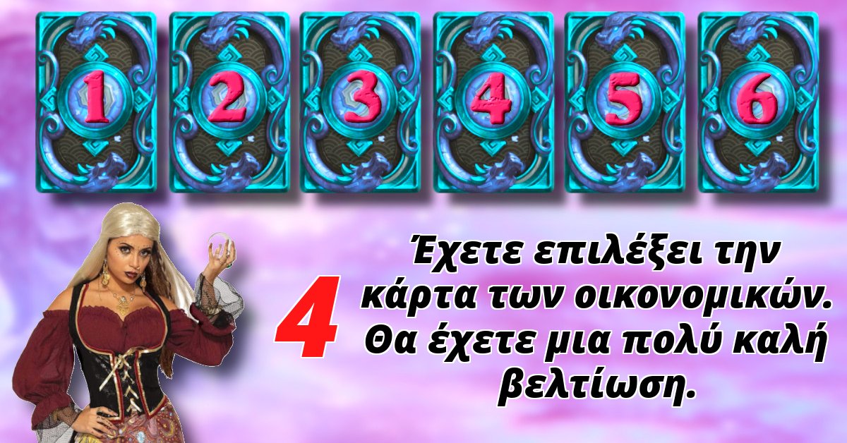 Η μάντισσα θα τραβήξει ένα χαρτί από την τράπουλα μόνο για εσάς, το οποίο θα σας πει πολλά για το μελλοντικό σας πεπρωμένο.