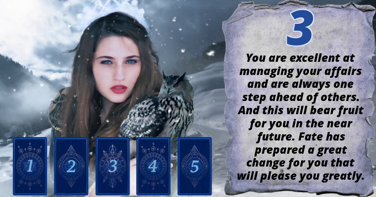 You are excellent at managing your affairs and are always one step ahead of others. And this will bear fruit for you in the near future. Fate has prepared a great change for you that will please you greatly.