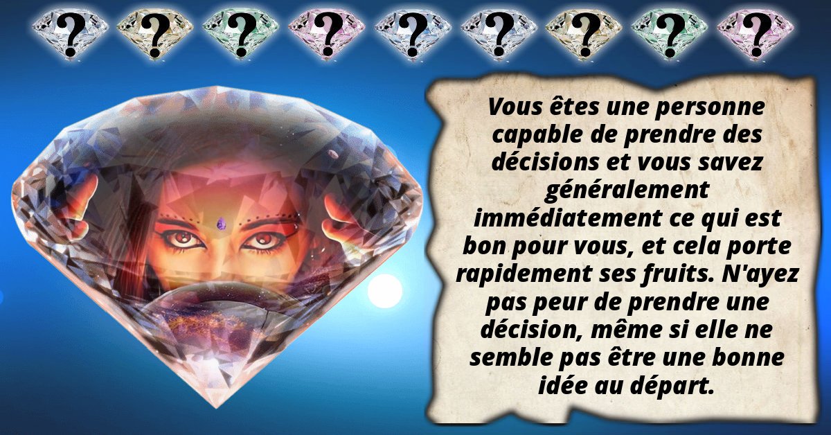 Vous êtes une personne capable de prendre des décisions et vous savez généralement immédiatement ce qui est bon pour vous, et cela porte rapidement ses fruits. N'ayez pas peur de prendre une décision, même si elle ne semble pas être une bonne idée au départ.