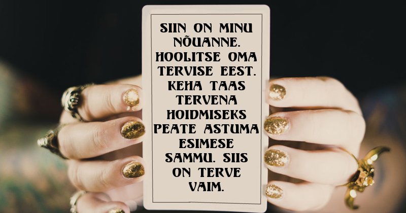 Ma tunnen teid väga hästi. Soovite nõu, mida edasi teha?