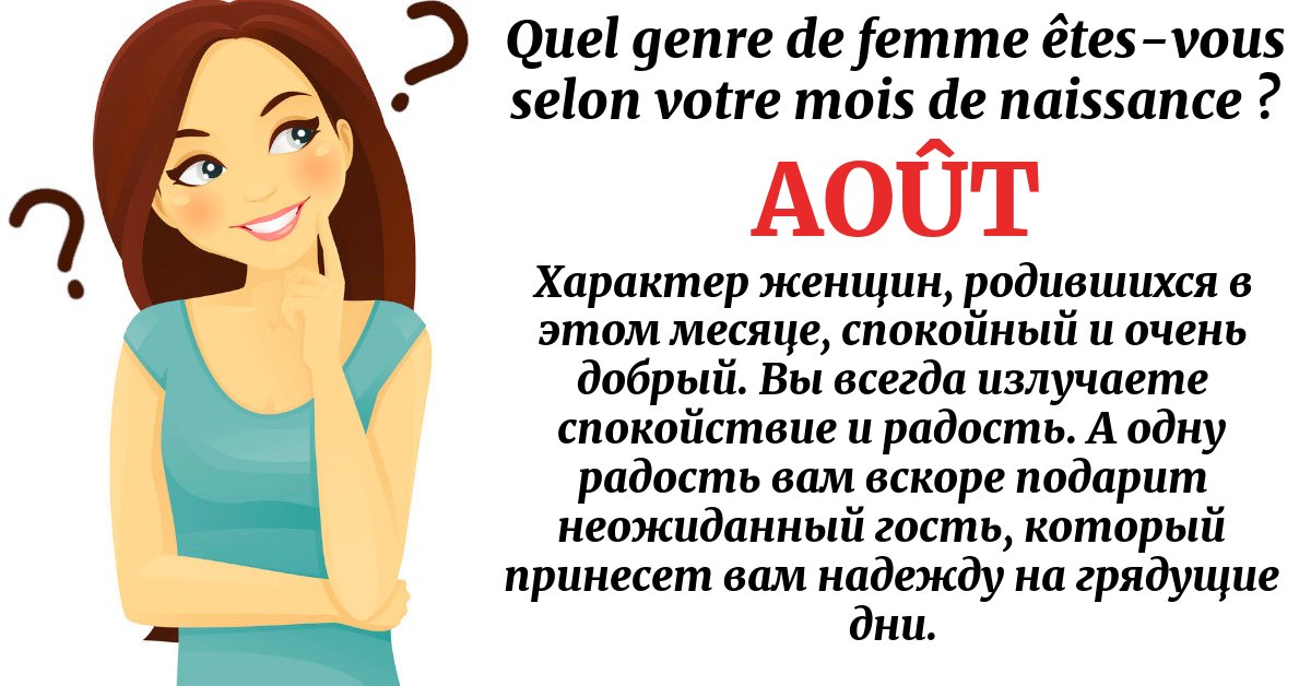 Характер женщин, родившихся в этом месяце, спокойный и очень добрый. Вы всегда излучаете спокойствие и радость. А одну радость вам вскоре подарит неожиданный гость, который принесет вам надежду на грядущие дни.