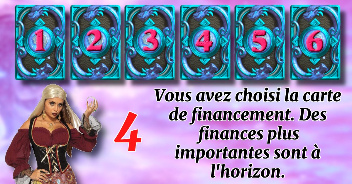 Adèle la diseuse de bonne aventure veut que tu révèles une carte ! Vous attendez une surprise ?