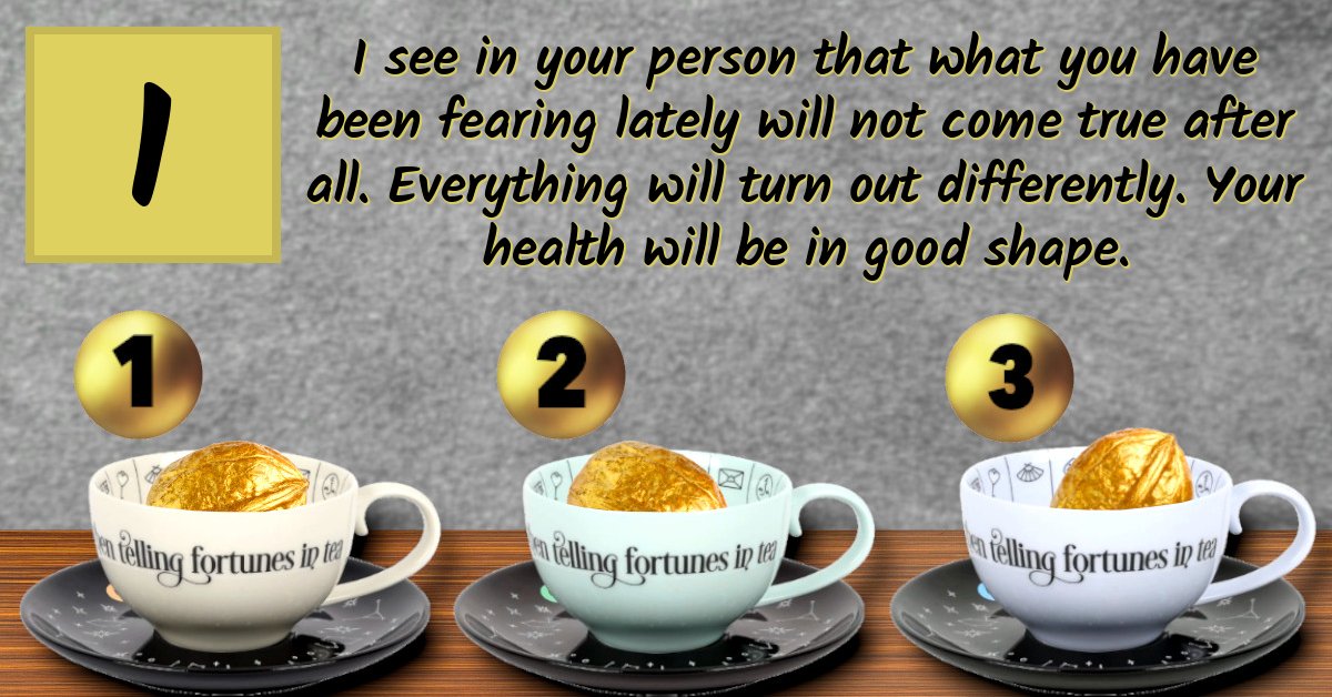 I see in your person that what you have been fearing lately will not come true after all. Everything will turn out differently. Your health will be in good shape.