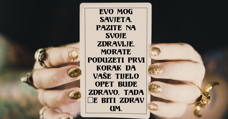 Hoćeš li opet imati sreće? Kakvo će biti vaše zdravlje? Gdje će tvoj život otići?