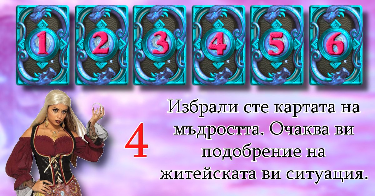 Избрали сте картата на мъдростта. Очаква ви подобрение на житейската ви ситуация.