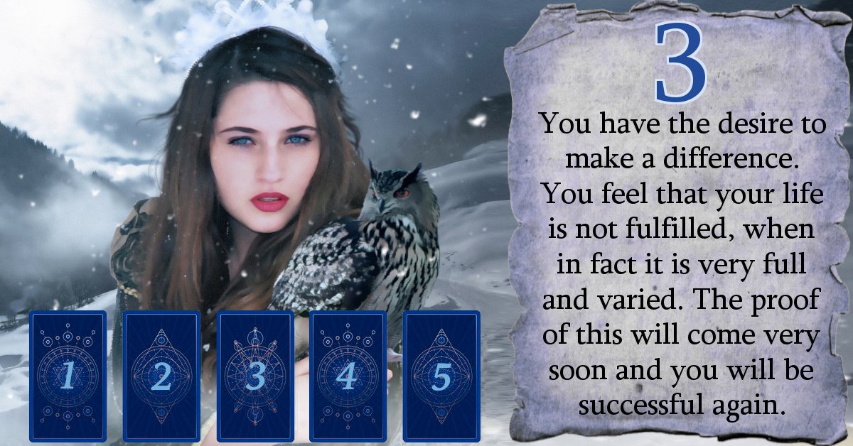 You have the desire to make a difference. You feel that your life is not fulfilled, when in fact it is very full and varied. The proof of this will come very soon and you will be successful again.