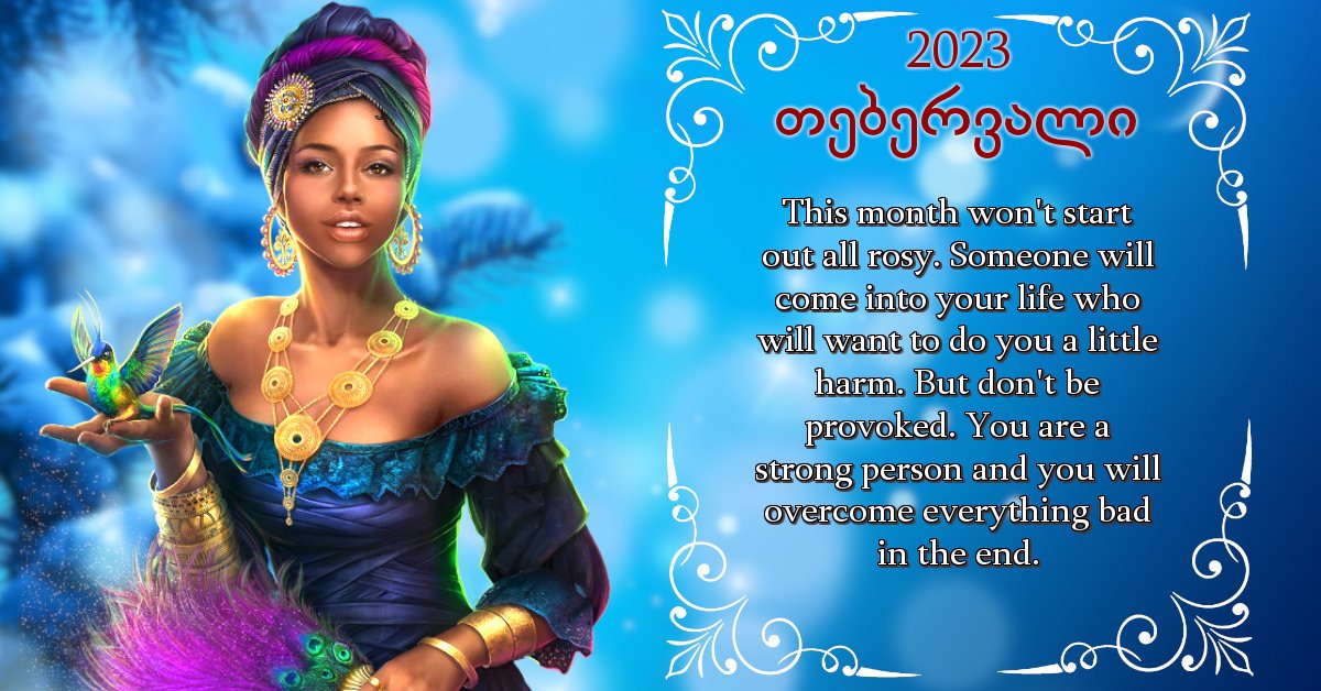 This month won't start out all rosy. Someone will come into your life who will want to do you a little harm. But don't be provoked. You are a strong person and you will overcome everything bad in the end.