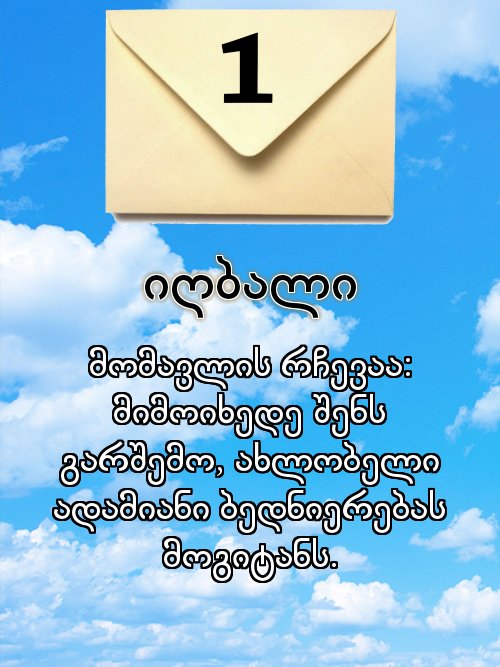 ბედი უთხარით ერთ ბარათს, რომელიც გიჩვენებთ შემდეგს.