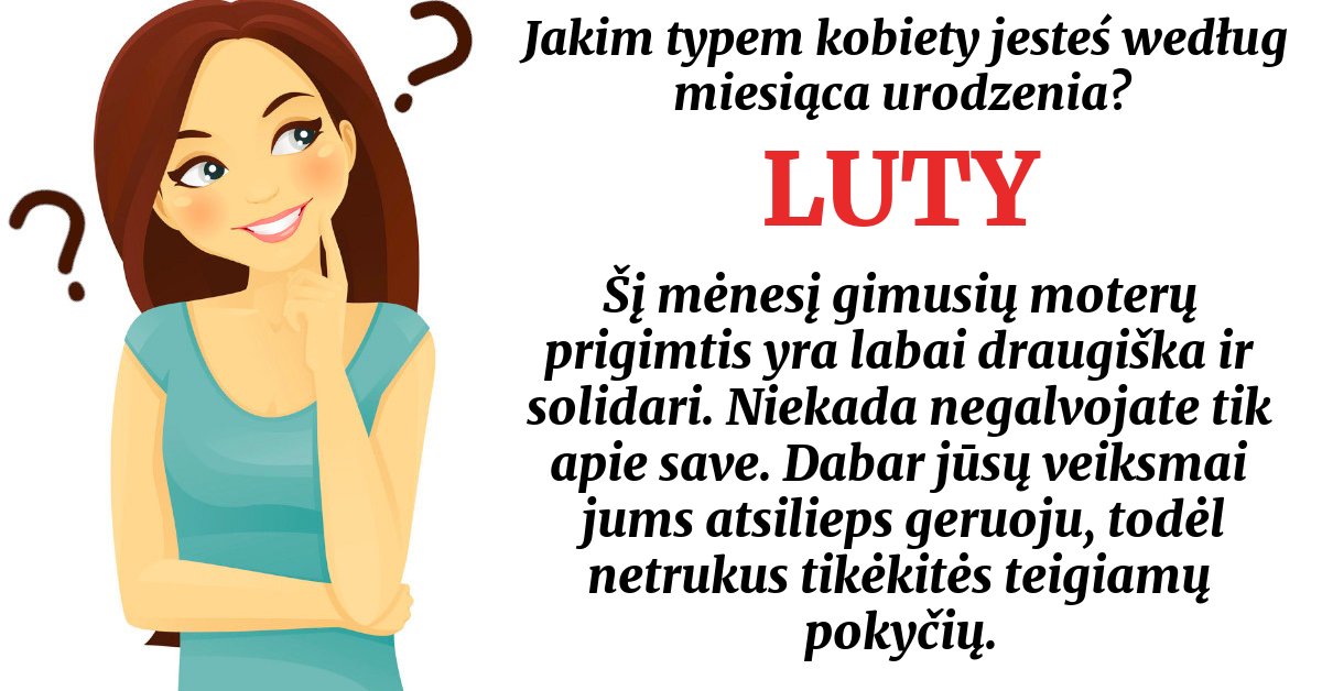 Šį mėnesį gimusių moterų prigimtis yra labai draugiška ir solidari. Niekada negalvojate tik apie save. Dabar jūsų veiksmai jums atsilieps geruoju, todėl netrukus tikėkitės teigiamų pokyčių.