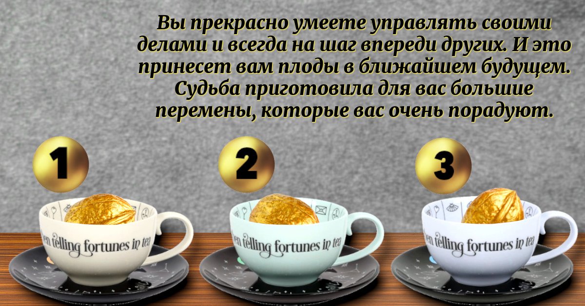 В каждой чашке находится по одному золотому ореху, и вы тщательно выбираете только один из них!