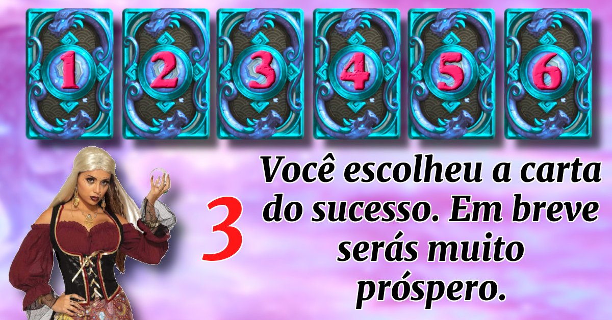 Você escolheu a carta do sucesso. Em breve serás muito próspero.