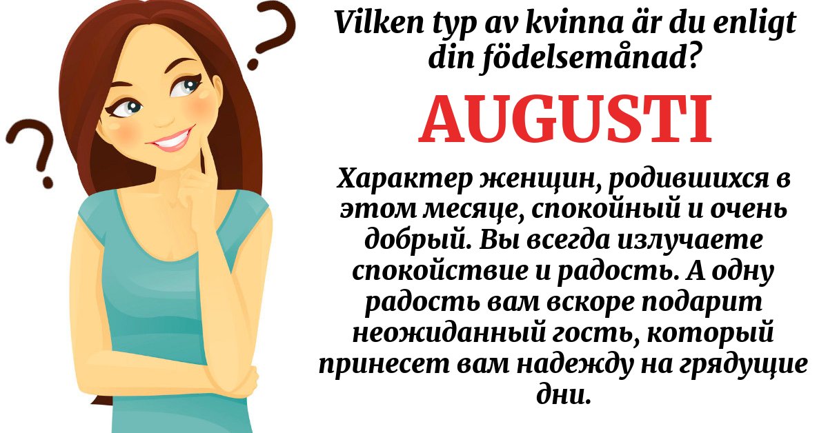 Характер женщин, родившихся в этом месяце, спокойный и очень добрый. Вы всегда излучаете спокойствие и радость. А одну радость вам вскоре подарит неожиданный гость, который принесет вам надежду на грядущие дни.