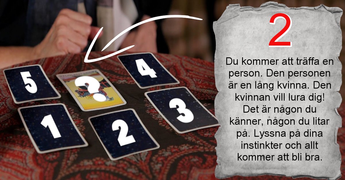 Du kommer att träffa en person. Den personen är en lång kvinna. Den kvinnan vill lura dig! Det är någon du känner, någon du litar på. Lyssna på dina instinkter och allt kommer att bli bra.